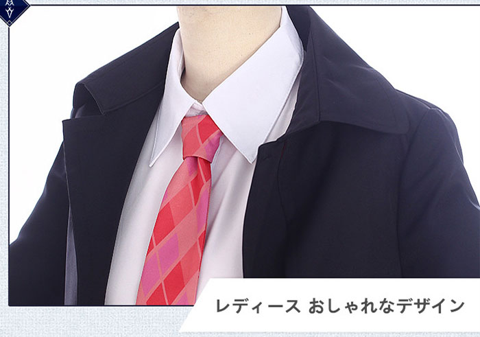 衣装はブラックのオーバーコートと白いのシャツ、そしてキュロットスカートです、ポリエステル表地を作ります、張りの有る素材、質感が良く。そして100%綿の芯地、肌に優しいです。肌に敏感な人も心配する必要がありません。